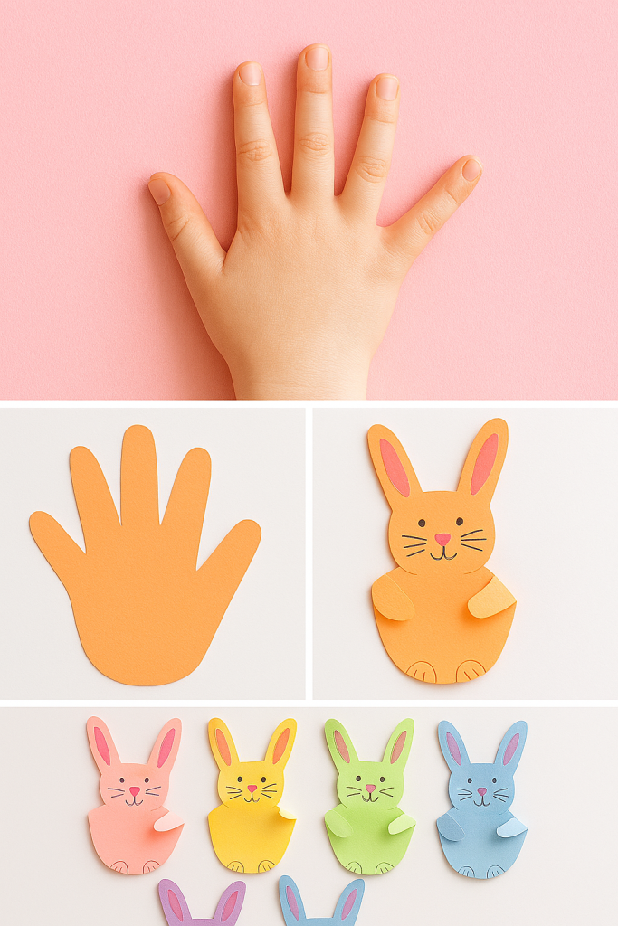 - Recorta la forma y dale “forma de conejo”: dos dedos serán orejas.
